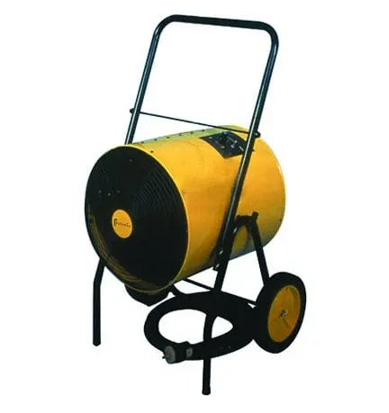 The KB H-51 is a indoor electric heater with a capacity of more than 51,195 BTU/h. The unit is completely self-contained and can be left unattended with no need for re-fueling or venting of combustion gases. Designed for small enclosed areas, A guaranteed temperature rise in two hours. Safety features include screens at each end of the heat drum and a remote thermostat for temperature control. The units have bright colors for high visibility in crowded areas.