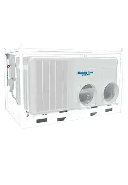 Specifically designed for large-area cooling applications, the KB M-100 is a high-performance portable unit capable of handling up to 126,000 BTU/h. Available in either skid or trailer mounts, the unit can supplement an HVAC system during routine shutdowns or provide cost-effective emergency backup cooling.